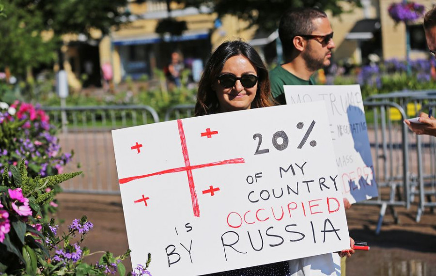 "Біля пам'ятника Рунебергу в парку Еспланада демонстранти з українськими прапорами вимагають припинити російську агресію в Україні", – йдеться в повідомленні.