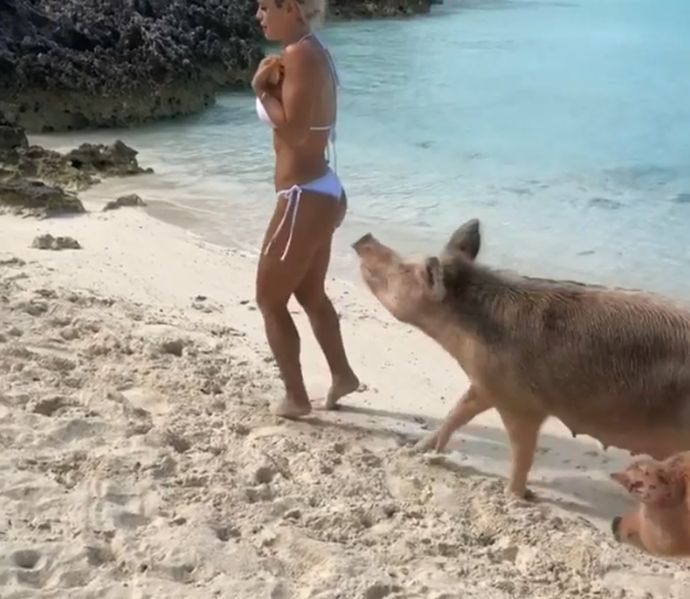 Однією з цікавинок Багамських островів є дикі свині, які плавають у прозорій водичці на тлі райських краєвидів, поблажливо дозволяючи туристам з собою фотографуватися.