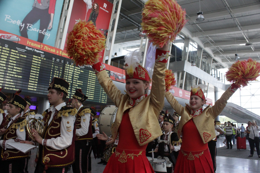 У Міжнародному аеропорту «Львів» ім. Данила Галицького відбулося музичне запрошення на святкування Дня міста від духового оркестру «Львівські фанфари».