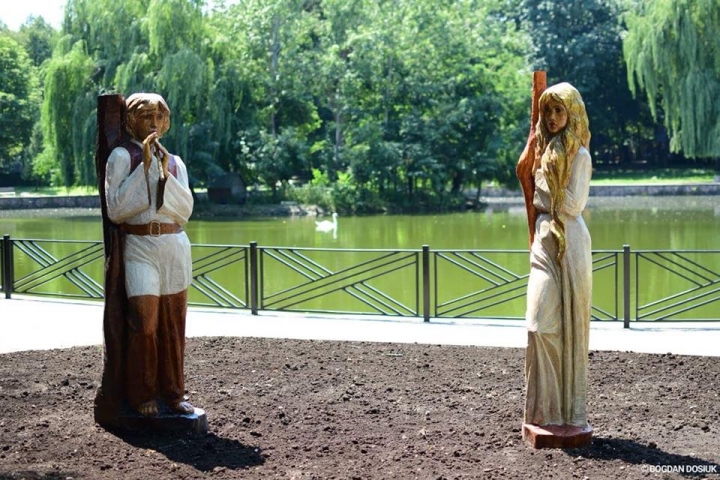 У центральному парку поблизу озера встановили дві скульптури закоханих Марічки та Іванка – героїв повісті «Тіні забутих предків».