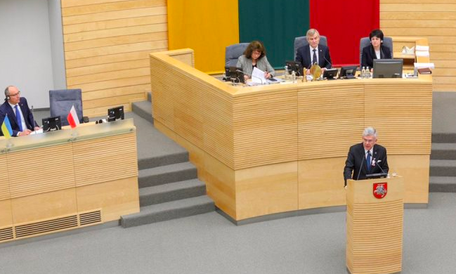 Литовський Сейм ухвалив резолюцію із засудженням проведення 11 листопада псевдовиборів на території України, тимчасово окупованій Росією та проросійськими терористами. «Організовані сепаратистами „вибори” на окупованих територіях Луганська та Донецька показують свавілля Росії, яка там є окупаційною силою», - говориться у резолюції. Документ підтримали 109 литовських депутатів, ніхто не проголосував «проти».
