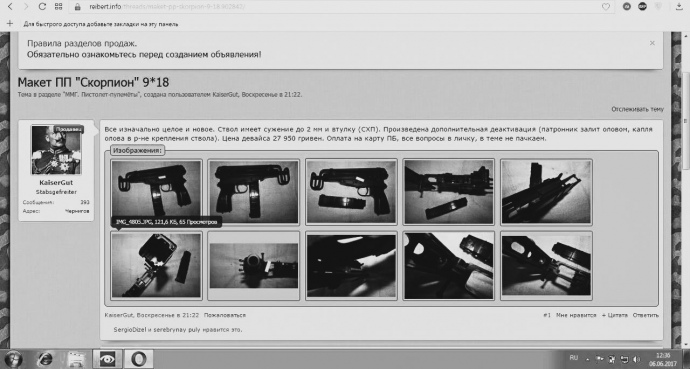 Пізніше Кутьін виявив, що його макети зброї продаються в інтернеті.