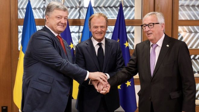 Україну на цій зустрічі представляв президент Петро Порошенко, ЄС – президент Європейської ради Дональд Туск і голова Єврокомісії Жан-Клод Юнкер.