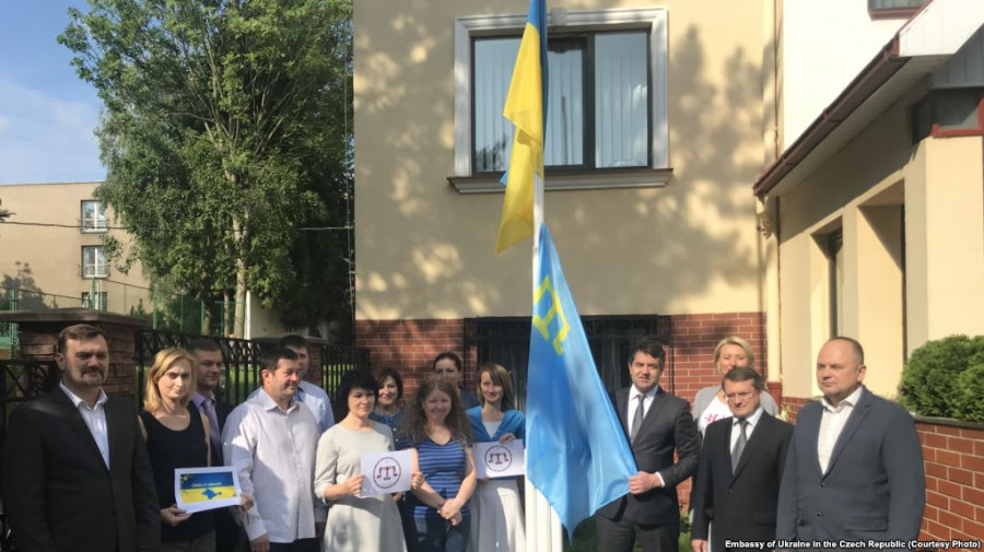 На честь Дня вшанування кримськотатарського прапора стяг урочисто підняли на щоглі перед посольством України в Чеській Республіці.