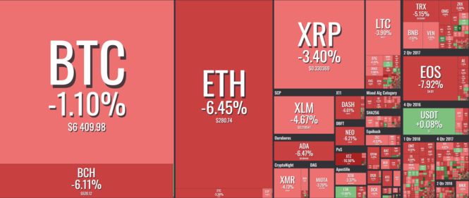 Так, за останні 24 години Bitcoin впав на 1,1% - до $6 409, Ethereum - на 6,45%, до $280,7, Ripple - на 3,4%, до $0,330, Bitcoin Саsh - на 6,11%, до $528,1, EOS - на 7,92%, до $4,81.