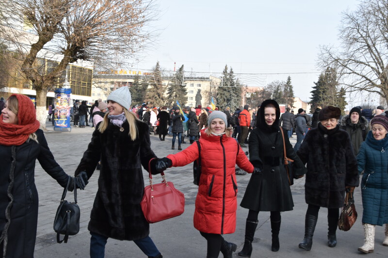 Під час акції десятки лучан, взявшись за руки, утворили живий ланцюг, що простягся від Театрального майдану по вулиці Лесі Українки. Молодь та старше покоління: усі, як один, разом заспівали Гімн України.