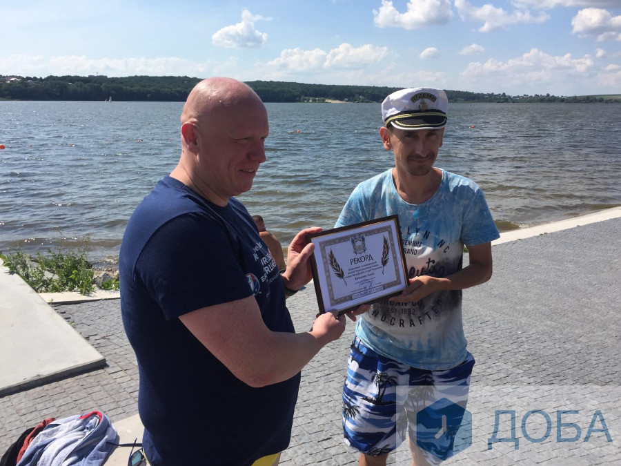 За годину і 14 хвилин Іван Янчишин подолав усю дистанцію. Каже, що кілька раз ковтнув води з озера і заважав вітер, проте рекорд все ж вдалось встановити.