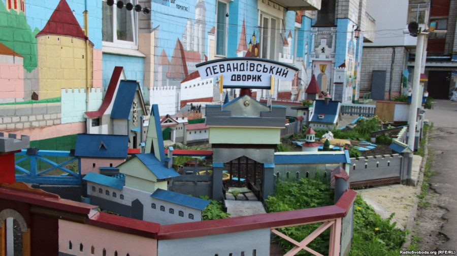 Ще кілька років тому прибудинкова територія відлякувала своєю непривабливістю і нею ніхто особливо не переймався – сміття, обписані лайливими словами стіни. Люди швиденько проходили повз. Нині, навпаки, сповільнюють хід, щоб роздивитись на оборонні фортеці, Глинянську браму, церкви, вітряк, розпізнати, яку саме історичну споруду відтворив їхній 80-річний сусід Юрій Краєвський, якого мило кличуть «наш дідусь» і, навіть, називають «королем Левандівського стріт арту».