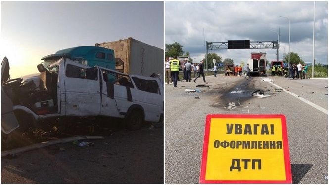 Друга аварія сталася на трасі в Житомирській області. Рейсовий автобус Київ-Рівне зіткнувся з вантажівкою, загинули 10 осіб.