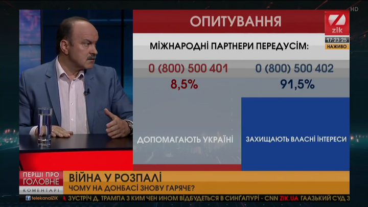 На запитання ведучої, чи можливо сформулювати, проти кого проводиться Операція об'єднаних сил із за рахунок чого будуть вводитися миротворці, пан Цимбалюк відповів, що військові керівники операції кажуть, мовляв, це буде зачистка території від російських окупантів, бо у військовій присутності Росії ні в кого немає сумніву.