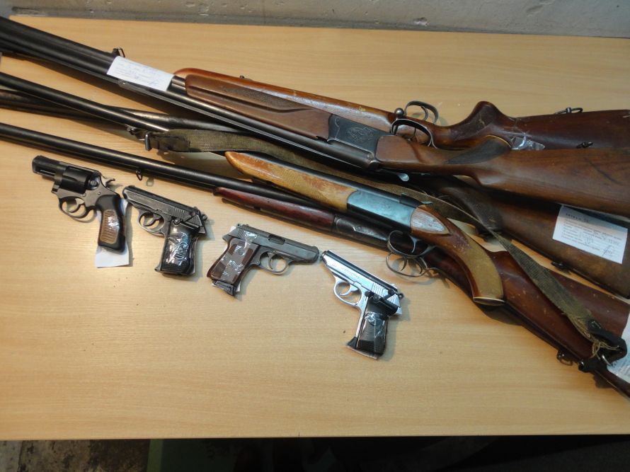 У ході досудового розслідування у підозрюваного виявили та вилучили 39 патронів, призначених для стрільби із короткоствольної нарізної вогнепальної зброї, пістолетів Макарова та пістолетів – кулеметів відповідного калібру, 7 патронів виготовлених шляхом саморобного переспорядження, пістолет, що являється коротко ствольною, нарізною вогнепальною зброєю та ручну наступальну гранату «РГД – 5» з підривником.