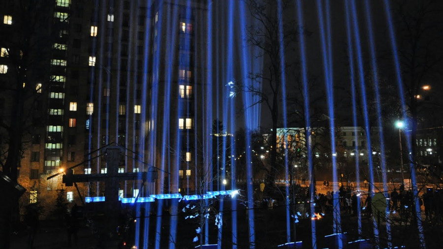 За задумом організаторів цієї акції, ці промені символізують, душі загиблих. На Алеї Героїв Небесної сотні зібрались десятки людей. Вони приносили квіти та лампадки до рукотворного меморіалу на Алеї. Пам’ять загиблих вшанували молебнем.