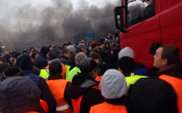 Однак один із водіїв вантажного автомобіля вирішив проїхати без черги. Такі дії обурили мітингувальників. Вони почали кидати в автомобіль шини та битися, а водій вигукував із автомобіля: «Я вас всіх поріжу!».