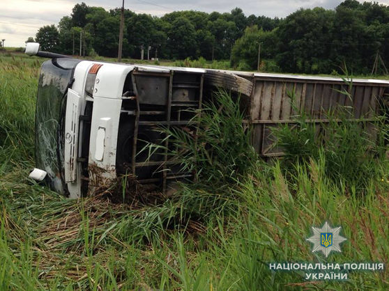 У Рівненській області 1 липня близько 15:00 на трасі Київ-Чоп поблизу села Птича Дубенського району перекинувся автобус Mercedes 404, у якому було 47 людей.