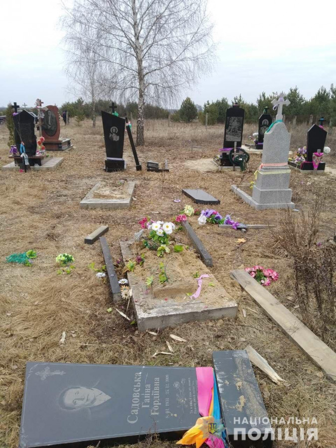 Близько 11 години до поліції звернулася місцева жителька, що на кладовищі пошкоджено два надгробки могил її родичів. Зловмисник повиймав гранітні стовпчики та зірвав надгробні плити, які покинув за кілька метрів, повідомили в прес-службі поліції Рівненської області.