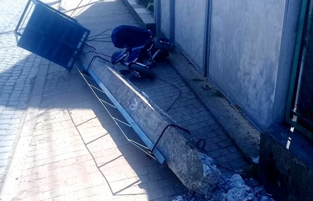 Як наслідок електричний стовп впав на тротуар, зачепивши візочок з 2-річною дитиною.