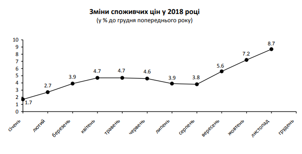 Індекс споживчих цін у Львівській області у листопаді 2018 року порівняно з попереднім місяцем становив 101,4% (в Україні – 101,4%), з початку року – 108,7% (в Україні – 108,9%).
