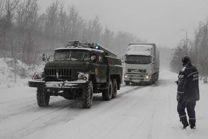 Обмеження на рух транспорту запроваджено у зв'язку із сильними снігопадами, хуртовинами та ожеледдю