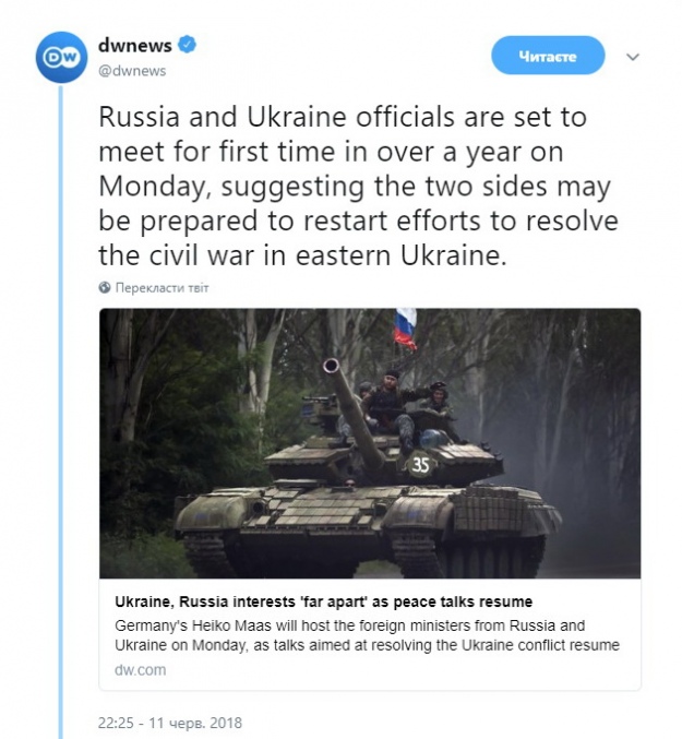 Як пише ЄП, стаття вийшла 11 червня на англомовній версії Deutsche Welle і присвячена вчорашній зустрічі глав МЗС країн нормандської четвірки у Берліні. У тексті статті агресія РФ проти України називається "громадянської війною".