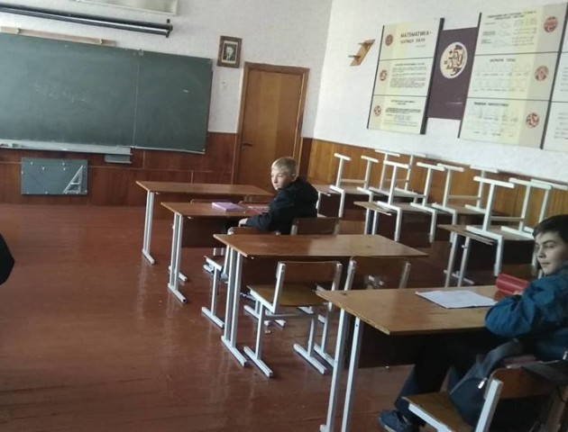 Навчальний процес триває, попри те, що класні кімнати напівпорожні. У деяких класах немає дітей, у 7-му одна учениця замість 9.