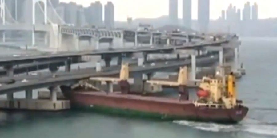 У Мережі опублікували відео, на якому зображено зіткнення російського вантажного судна Сігранд з автомобільним мостом у південнокорейському Пусані.