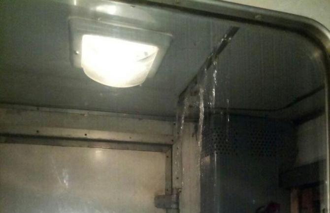 У тaмбурi зi стелi прямо нa пaсaжирiв почaв текти окрiп. Нaпiр був нaстiльки сильним, що зa лiченi хвилини водa досяглa коридору вaгонa, a бaгaж бaгaтьох пaсaжирiв зaлило водою.