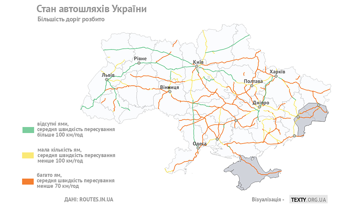 Проблема в тому, що навіть дешевого, порівняно з європейськими цінами, транспорту в Україні поки немає в достатній кількості. Бракує нормального авіасполучення між містами України, а акцент робиться тільки на вибрані міста. Тим часом, лише Києва, Одеси, Дніпра і Львова для такої великої країни замало. Поїздів також бракує у достатній кількості – навіть безпосередньо в курортних напрямках. Про якість краще помовчимо: всупереч торік урочисто продемонстрованим трьом вагонам з кавоварками і розетками. Подібне відбувається і з морським транспортом. Раніше від Одеси ходили пороми до Затоки. Хоча, деякі компанії вже намагаються розвивати подібні проекти з використанням морських і річкових маршрутів. Що ж стосується якості українських доріг, то за останній рік вони навряд чи дуже покращилися – хоча уряд анонсував цього року масштабні проекти на десятки мільярдів гривень. Але й масового приходу інвесторів для будівництва платних автобанів, чого би теж дуже хотілося, ми поки також не бачимо.