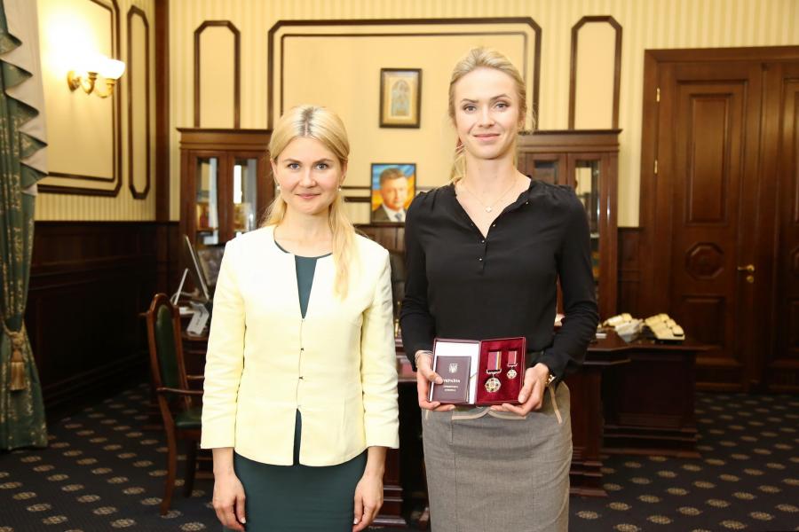 «З гордістю за наших спортсменів сьогодні вручила державну нагороду Еліні Світоліній, яка відзначена президентом України за приголомшливі, фантастичні результати. Найкраща в Україні, п’ята у світі, 12 блискучих перемог на найвищих тенісних турнірах. Звичайно ж, ми вболіваємо за Еліну і підтримуємо її. І віримо в її майбутні перемоги», – сказала Юлія Світлична.