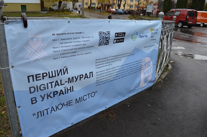 У Рівному відбулася презентація першого в Україні муралу з технологією доповнення реальності «Летюче місто», повідомив офіційний сайт Рівненської міської ради.