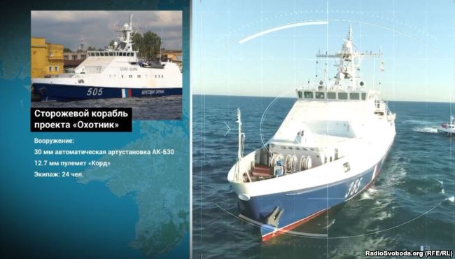 До прикладу, нещодавно до району Азовського моря і Керченської протоки росіяни перекинули сторожові кораблі «Керч», «Сиктивкар», «Кизляр» і «Балаклава». Всі однотипні. Із озброєння: скорострільна шестиствольна 30-міліметрова і 76-міліметрова гармати та кулемети. В екіпажу – переносні зенітно-ракетні комплекси. В районі Керченського мосту чергують прикордонні сторожові кораблі проекту «Мисливець» – з майданчиком для гелікоптера, озброєні 30-міліметровою артилерійською установкою і кулеметами. В акваторії моря курсують катери проекту «Соболь» і «Мангуст».