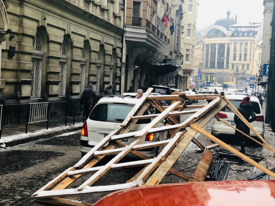 Вчора, 7 грудня, на вулиці Фредра у Львові обвалилося риштування, повідомив керівник ГО «Варта1» Ігор Зінкевич.