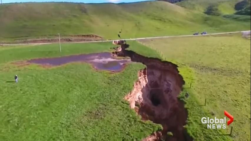 Після новин про те, що Африка розколюється на частини, з'явилося повідомлення, що гігантський провал утворився на фермі в Новій Зеландії.