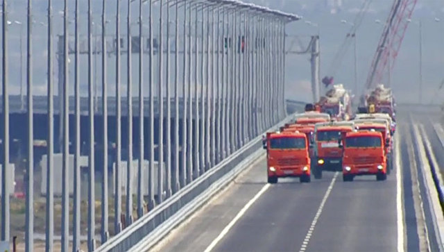 В окупованому Криму офіційно відкрили автомобільну частину так званого "Кримського мосту".