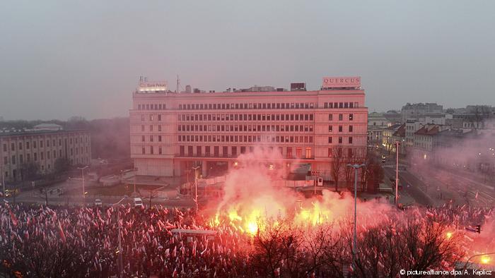 До спільного урочистого маршу також доєдналися польські націоналісти та ультраправі. Раніше міська голова Варшави Ганна Гронкевич-Вальц заборонила їм проведення заходів у столиці. Однак суд дозволив націоналістам вийти на марш.