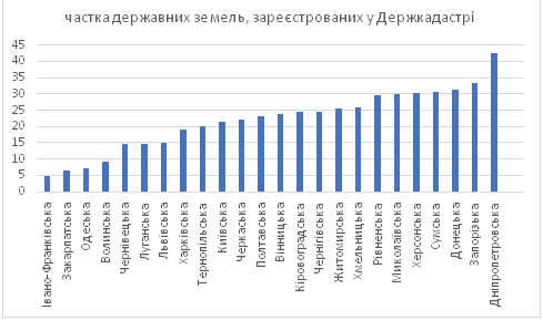 За цим показником область посідає останнє місце у рейтингу. На думку експертів, така ситуація сприяє корупції, адже невідомо, ким і як використовуються незареєстровані землі.