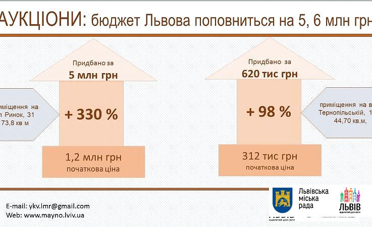 «В електронному аукціоні в’язало участь 9 учасників, і внаслідок проведення трьох раундів, вартість об'єкта зросла вдвічі — з 311 718 грн. до 620 100 грн. Вартість одного квадратного метра при цьому становить 13 872 грн», — зазначили в управлінні комунальної власності.