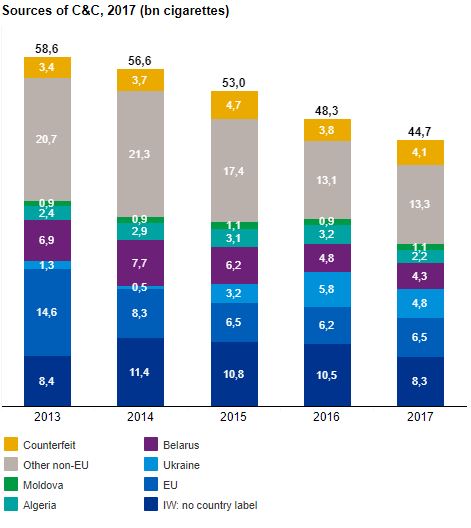 Хоча цей показник дещо знизився в порівнянні з попереднім роком, проте Україна є джерелом №1 контрабандних сигарет, що в умовах виконання Угоди про асоціацію між Україною та ЄС викликає занепокоєння з боку Брюсселя.