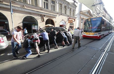 У столиці Чехії Празі водій позашляховика з полтавським номером 3333 припаркував машину на трамвайних коліях, заблокувавши рух трамваїв та спровокувавши затор.