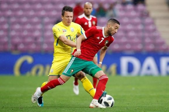 Впродовж всього матчу агресивніше діяли марокканці, які були близькі до успіху у першому таймі. На 22-й хвилині небезпечно з меж штрафного майданчика пробивав Хакім Зійєш, після чого голкіпер українців Андрій П'ятов перевів м'яч у штангу.