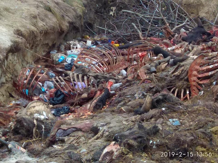 У п'ятницю, 15 лютого, активісти із журналістами зафіксували,що котлован,який був виявлений 23 січня 2019 року заповнений вщент свіжими рештками тваринного походження.