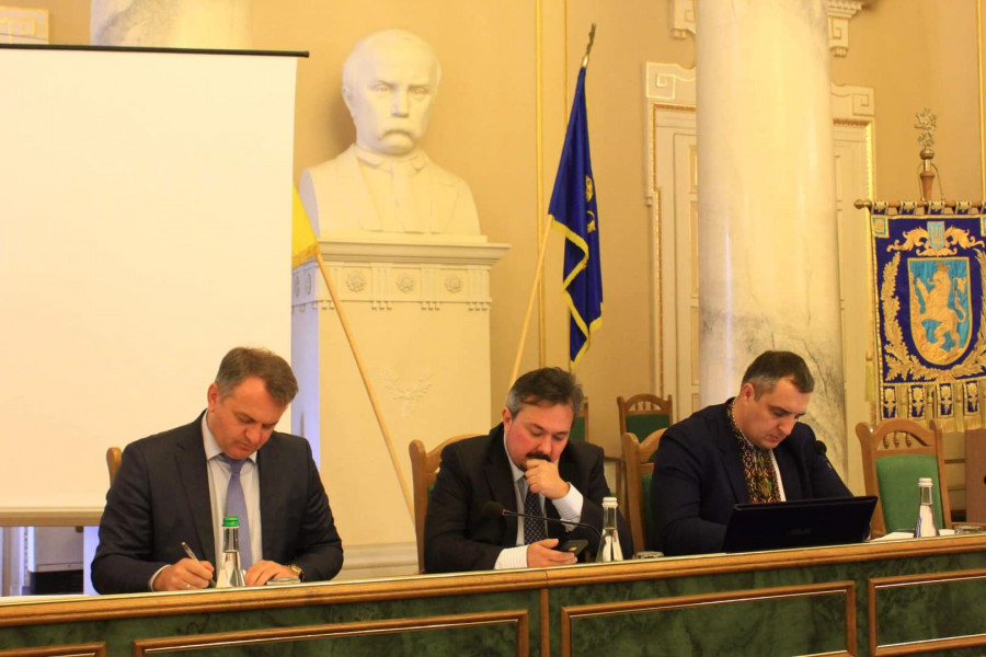 Депутати хвилиною мовчання вшанували пам'ять учасників АТО. Як повідомлено на сайт облради, за час, що минув з часу проведення останньої сесії, Львівщина зазнала таких втрат: 4 листопада пішов з життя старший лейтенант 24-ї Окремої механізованої бригади імені Короля Данила Віктор Телегій, 1973 р. н. Також після тривалого лікування у госпіталі в Варшаві помер учасник АТО, 23-річний Василь Колодій з м. Кам'янка-Бузька.