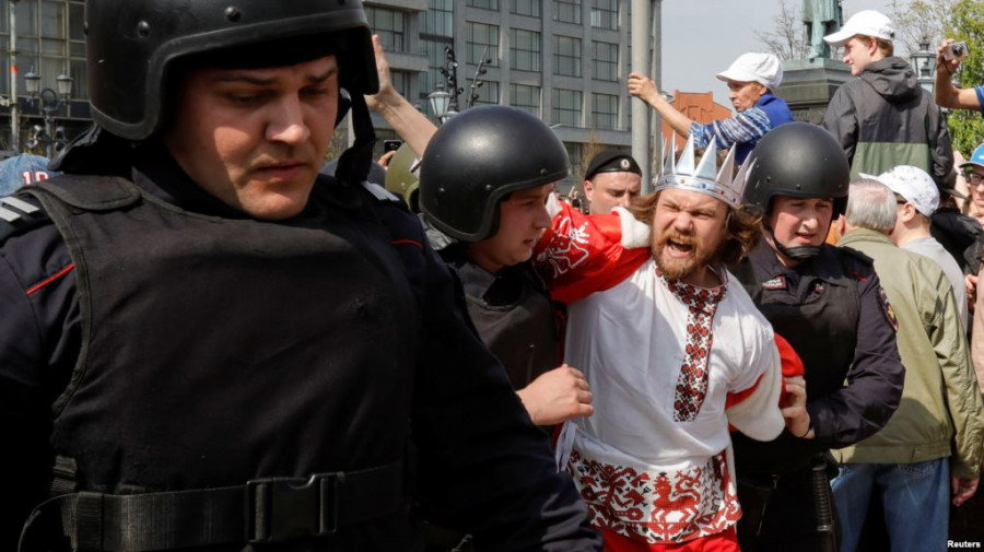 «Знешкодили» й ініціатора протестів, опозиціонера Олексія Навального. Поліція винесла його з місця мітингу на площі Пушкіна у центрі міста за руки й ноги.