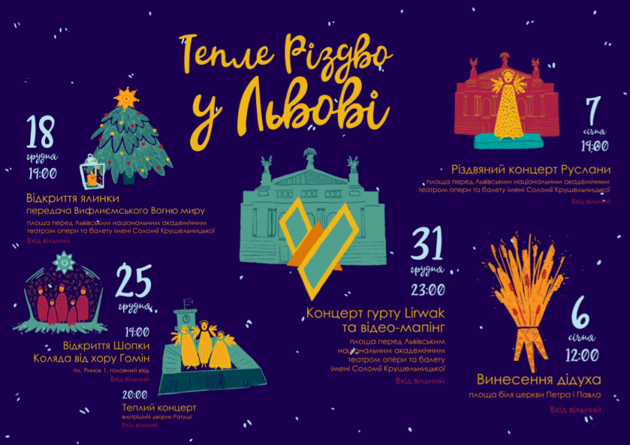 Львів’яни розпочинають святкувати Різдво та Новий рік 7 грудня, а закінчують 21 січня 2019 року. Загалом місто підготувало близько 200 цікавих подій.