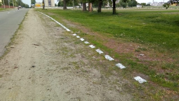 Нанесену на траві дорожню розмітку помітили у райцентрі Березне. Її фото виклали у Facebook спільноті "Типове Рівне".