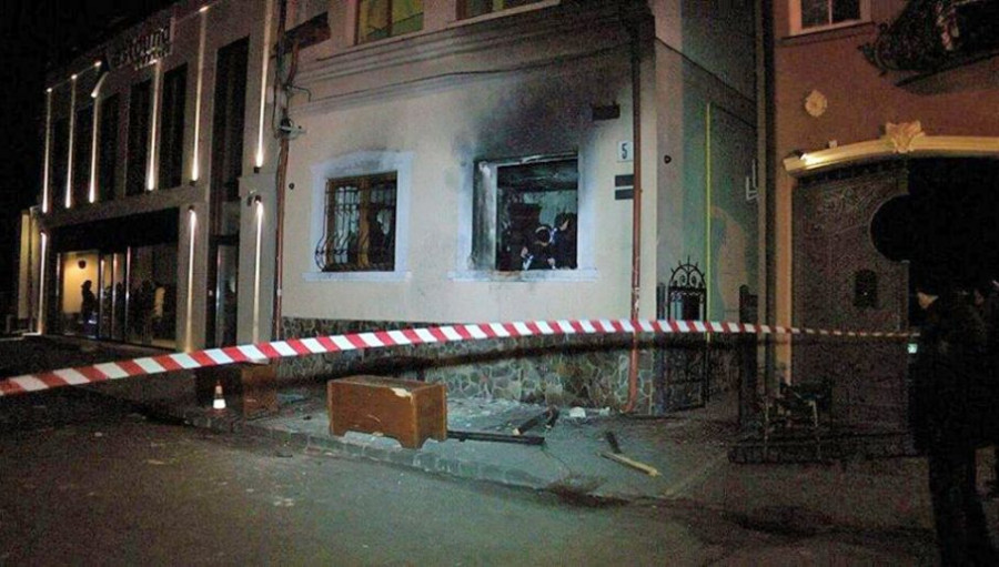 Вночі 4 лютого зловмисники намалювали на офісі ТУЗК "88" і кинули у розбите вікно пляшку із запалювальною сумішшю, яка однак не спалахнула. Надіславши відео злочину, вони отримали від Міхала відповідь, що "угорці не задоволені, і було б добре краще закоптити стіну".