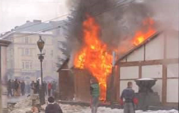 У Львові на проспекті Свободи сталася пожежа у будиночку, який розташований на Різдвяному ярмарку
