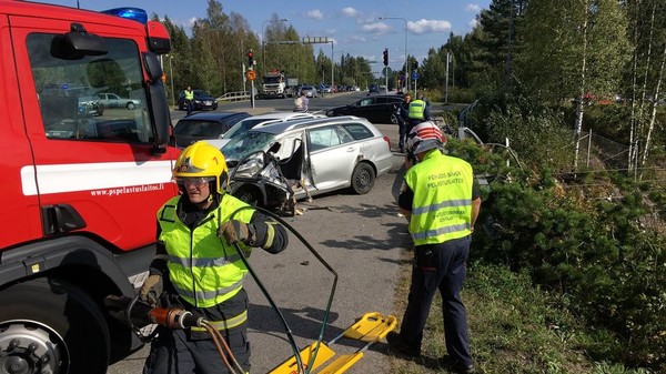 У Фінляндії в п'ятницю автобус зіткнувся з п'ятьма автомобілями і впав з мосту на залізничні колії.