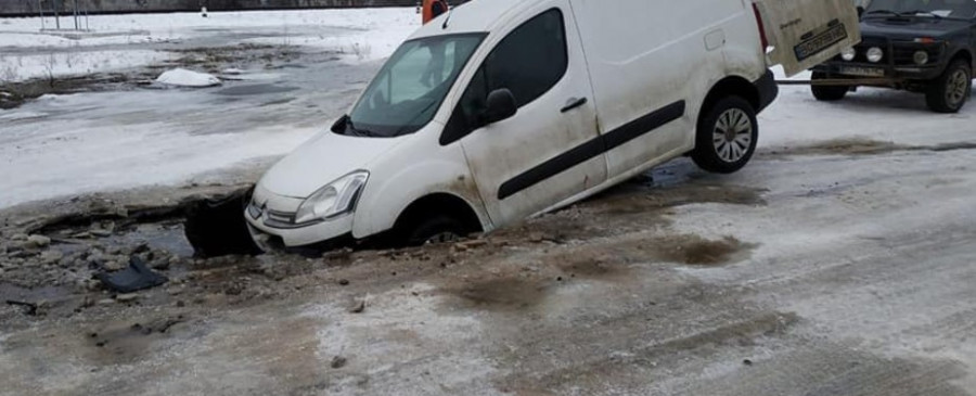 Сьогодні, 30 січня, на вулиці Ліцейній у Кам'янці-Бузькому Львівської області автомобіль Citro?n Berlingo провалився у яму.