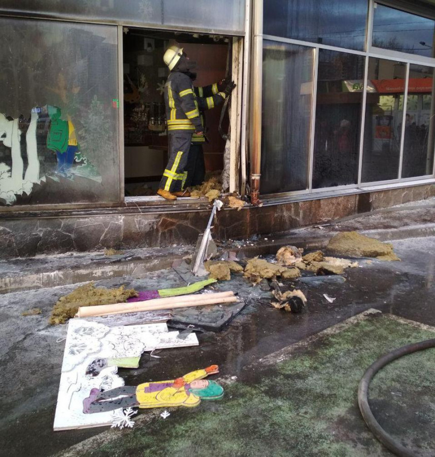 Пожежники встановили, що займання виникло на зовнішній стороні магазину на площі 5 квадратних метрів.