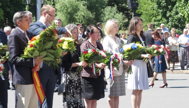 У покладанні квітів до Пам'ятника Свободи серед інших взяли участь тимчасовий повірений у справах України в Латвійській Республіці Аліса Подоляк та представники української діаспори.